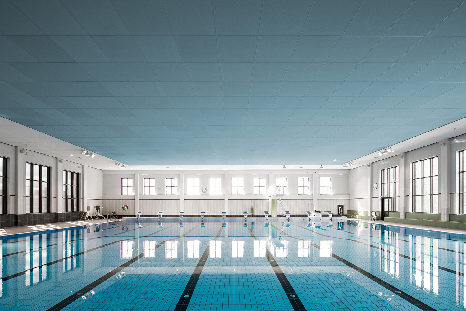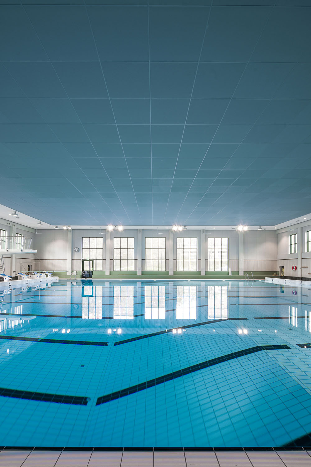 ”Ytskikten i en simhall ger naturligt mycket efterklang och då är det avgörande att tak och väggar ger goda akustiska förutsättningar för taluppfattbarhet och ljudnivå”, säger Malin Ahlstedt. Hon kompletteras av Julia Bartholomeusz, som fortsätter: ”Akustik är mycket viktigt i alla offentliga byggnader och särskilt i en simhall. Den akustiska miljön påverkar både personalens arbetsmiljö och besökarnas upplevelse, och är avgörande för att alla ska kunna uppfatta instruktioner och känna sig trygga.”